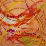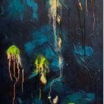 Vereinzelte warme Akzente in Orange setzen subtile Kontrapunkte innerhalb der reduzierten Farbpalette. Helle, fast neblige Partien öffnen den Raum und erzeugen eine spannungsvolle Balance zwischen Verdichtung und Leere.